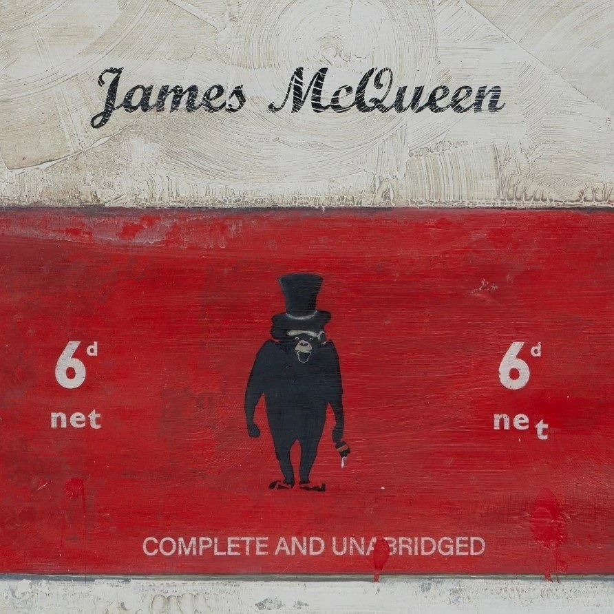 James McQueen’s complex application of paint elevates his art beyond the mere imitation of a nostalgic object towards an art that is rich and expressive, exploring themes of Pop art and abstraction. Working under a pseudonym, he introduces an autobiographical dimension to the work with his trademark monkey, using this mischievous character as a kind of personal insignia.