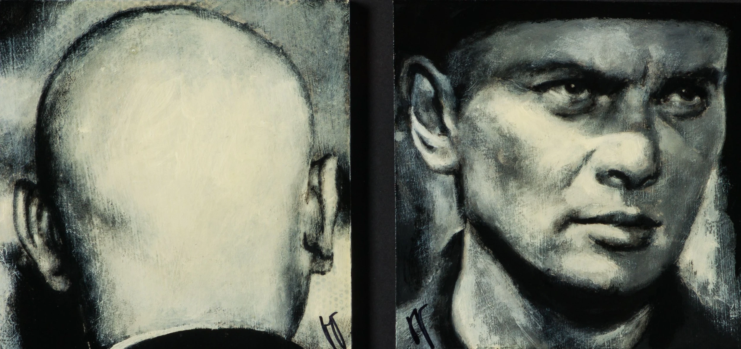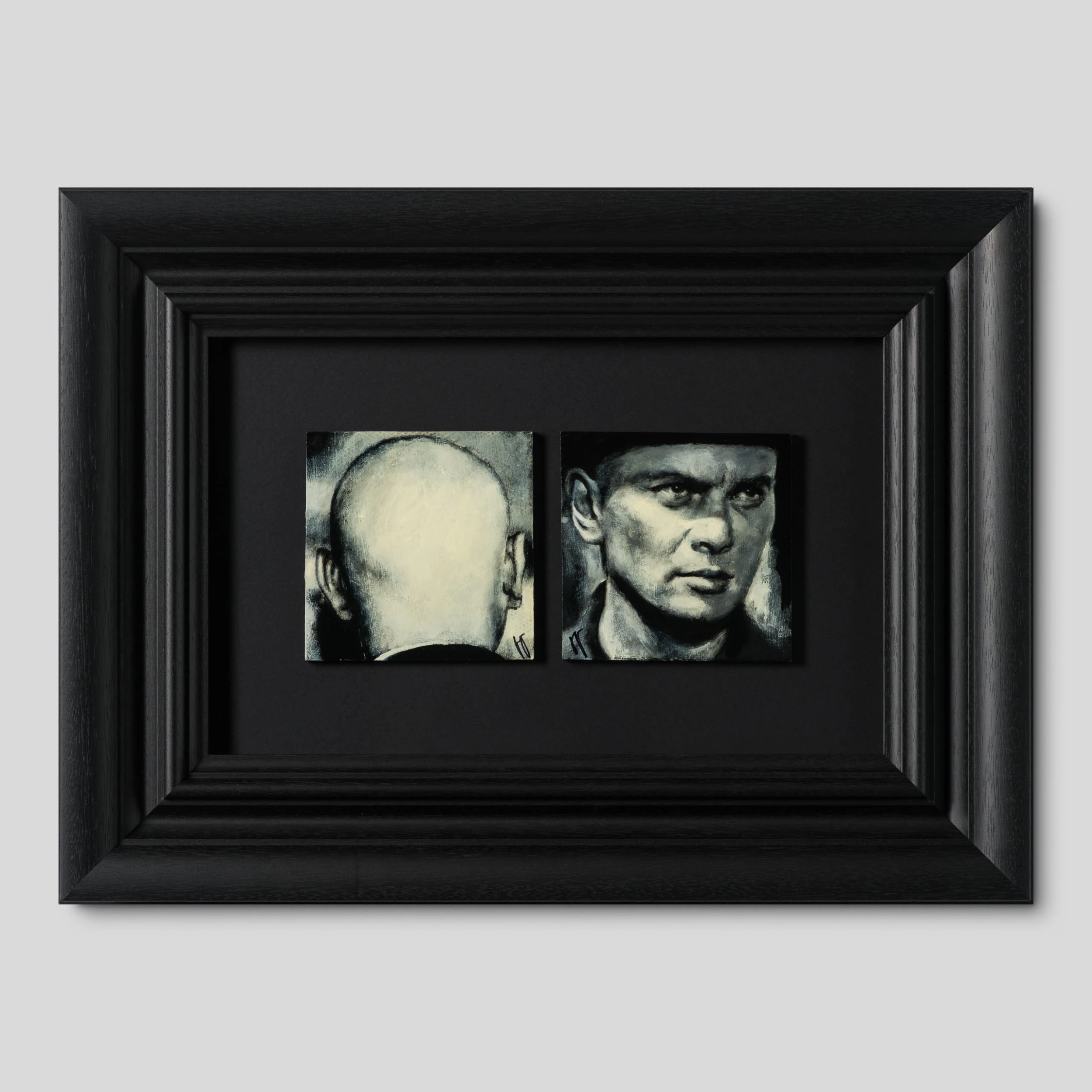 Perplexing, and melancholic, Jon’s work is created from the heart, and whilst striving to capture expressions, moods and feelings as a portrait painter, Jon loves the juxtaposition between the portraits with the “animated” portrait, bring a new humour element to the piece. All the individual portraits are from people who have interested or inspired the artist in this case Yul Brynner. The Russian actor was most famous for stage musical “The King and I” – which Jon remembers vividly “I cried when he died in the ‘king and I’ as a child and my fascination has continued all my life.”