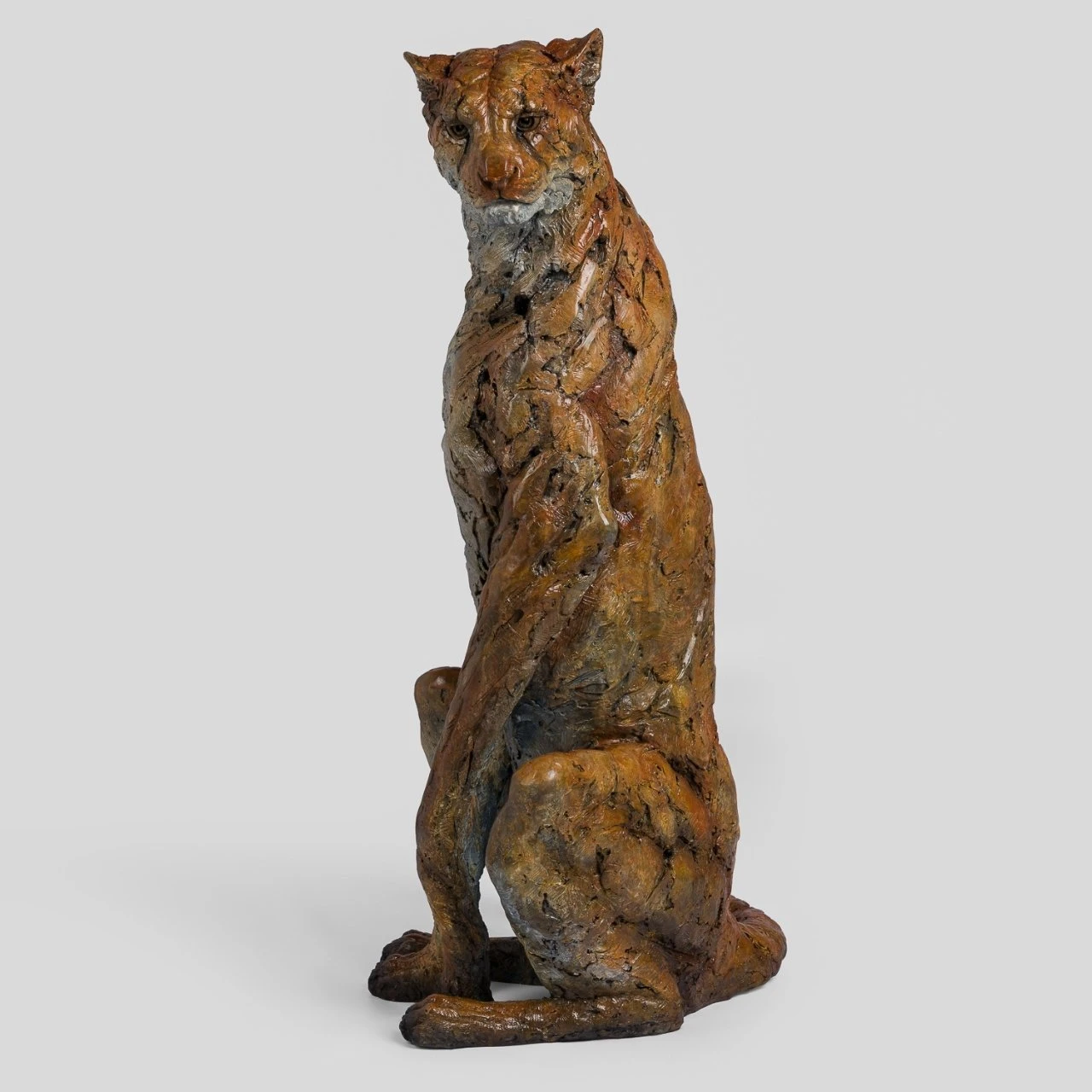 This new life sized sculpture presents the cheetah in a of moment respite. The composition of the animal connotes a feeling of alertness, through the tilted head and movement through the tail. Famously the fastest animal on land, the cheetah is celebrated for its speed and agility, while its graceful and elegant aesthetic makes the cheetah a perfect muse for a sculpture in this medium. Zephyr is the first all body sculpture Castle Fine Art will have collaborated with Steve Winterburn on, it is available as an edition of 8.